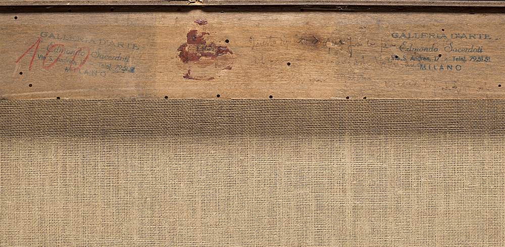 Galleria d'Arte Edmondo Sacerdoti, Milano. Timbri al retro