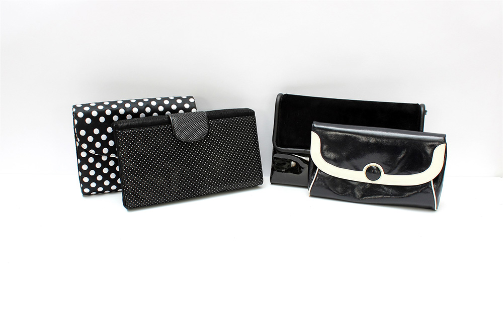 Lotto di quattro borse di tessuti differenti sui toni del bianco e nero (varie misure) (segni d'uso)