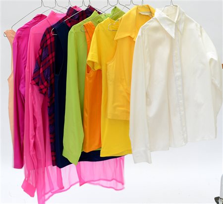 Lotto di dieci tra camicie e top in vari tessuti e colori differenti (difetti e segni d'uso)