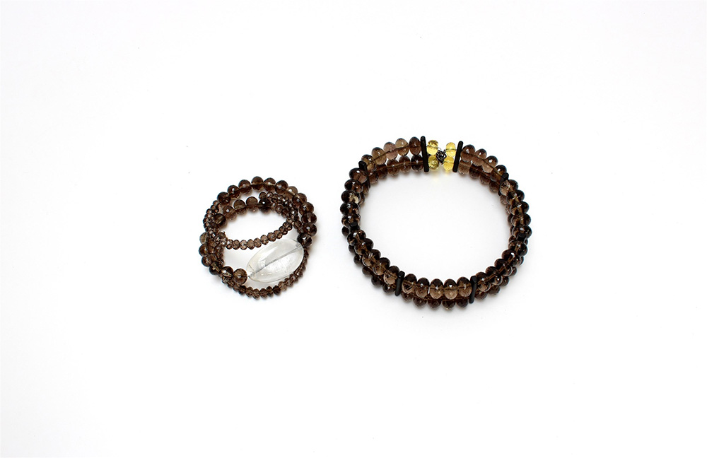 Lotto composto da un collier de chien e un braccialetto a molla in cristallo nei toni del ghiaccio e ambra