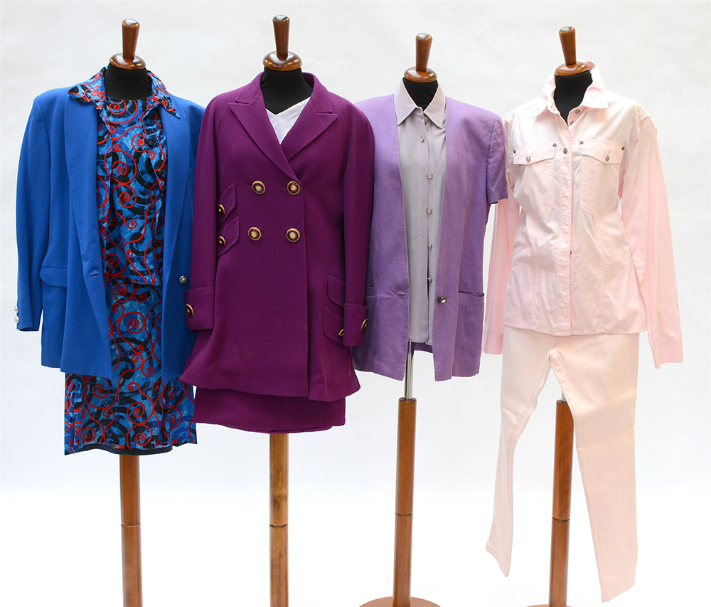 VERSUS, ISTANTE Lotto composto da tre giacche, un completo, camicia, maglia e gonna e tre tra camicie e maglie nei toni del bluette, rosso, rosa e lilla (misure diverse) (segni d'uso)