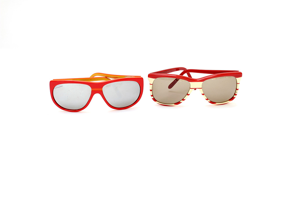 Lotto di due paia di occhiali "Equipe Italia" nei toni del rosso (lievi segni d'uso)