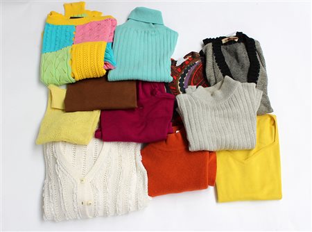 Lotto composto da 18 tra maglie, maglioni e top in vari materiali e colori, misure varie (difetti e segni d'uso)