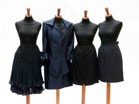 Lotto composto da un tailleur e tre gonne sui toni del nero e blu scuro