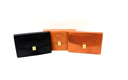Lotto di tre borselli da uomo di cui uno nero e due color cuoio, misure diverse