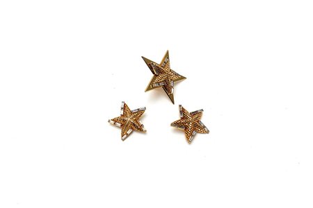 Demi-parure, anello e orecchini a clips, a forma di stella in metallo dorato