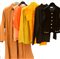 Lotto composto da due tailleur, un trench, due top, una maglia e un gilet sui toni dei bruciati, arancio e giallo (misure varie) (segni d'uso)