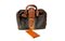 Lotto composto da un borsone da viaggio in pelle e cuoio bicolore con interno in tela plastificata logata e una bustina (cm 52) (difetti)