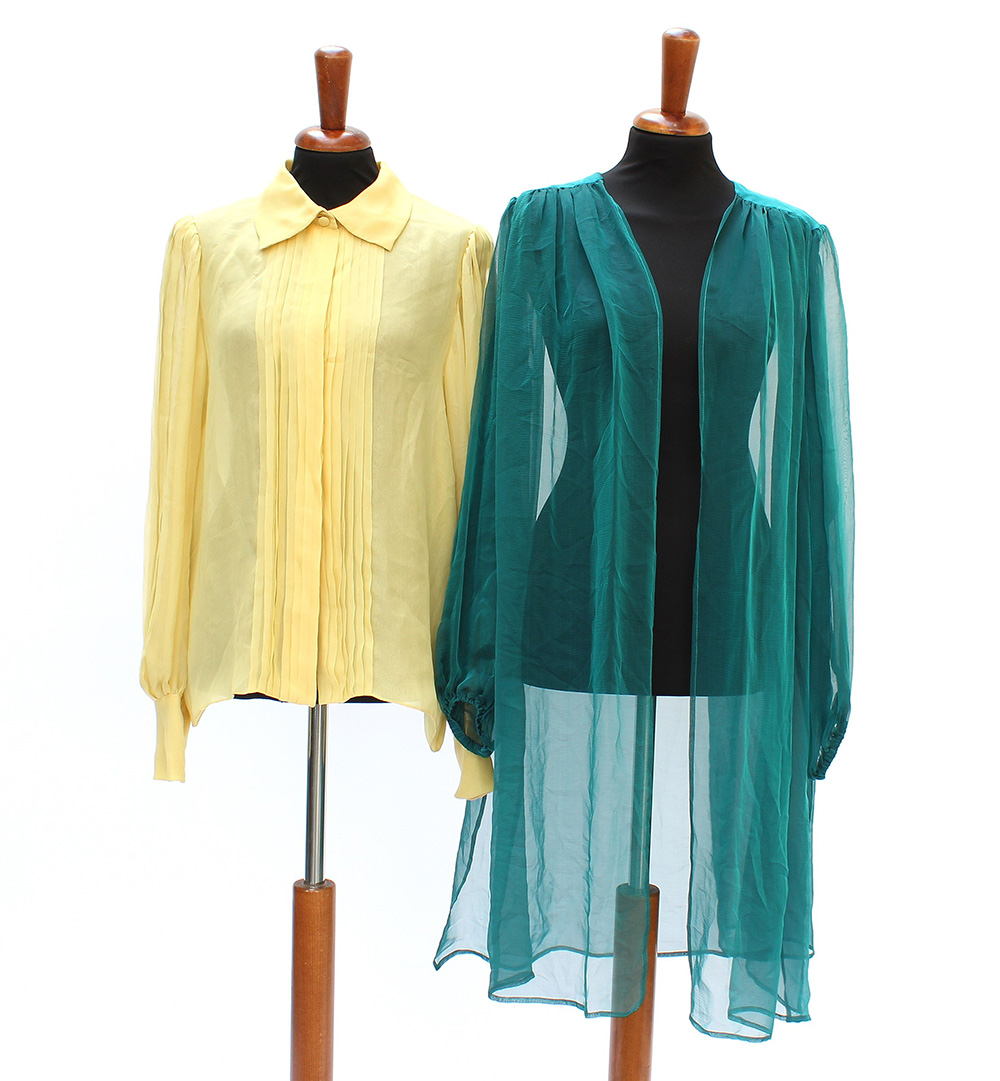 Loto comprising two different chiffon blouses, one in yellow the other emerald green (tg. 40/42) (wear)