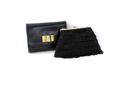 GUCCI e anonimoLotto di due pochettes: una in seta nera con frangette in...