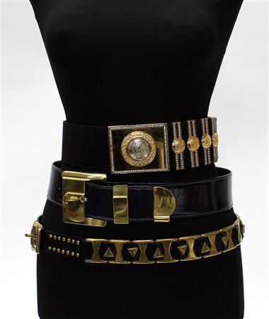 GIANNI VERSACE Lotto di tre cinture di forme, dimensioni, materiali...
