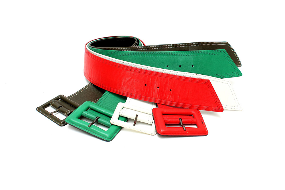 Lotto di quattro cinture alte, tutte in pelle di diversi colori (difetti)