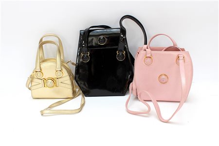 GIANNI VERSACE Lotto di tre borse logate in tinta unita, una in vernice nera,...