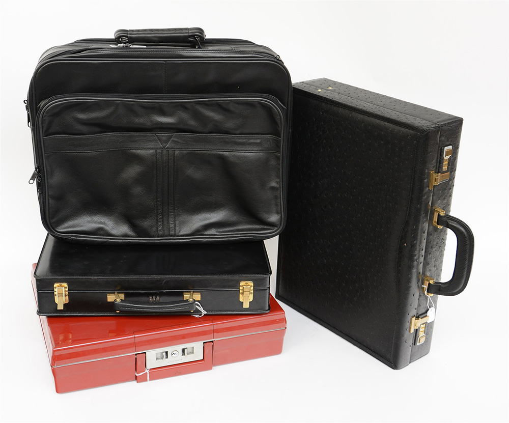 Lot comprising four 24 hour travel cases of which two in leather, one in ostrich leather and one in synther material (minor defects)