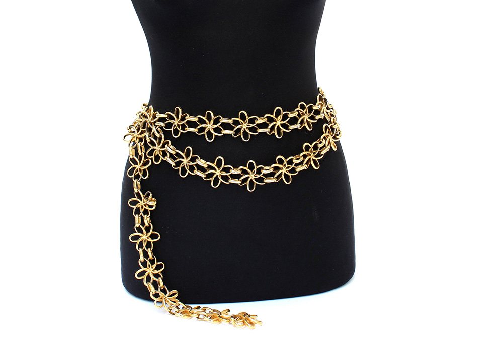 CHANELCintura in metallo color oro con motivo floreale unito da anelli...