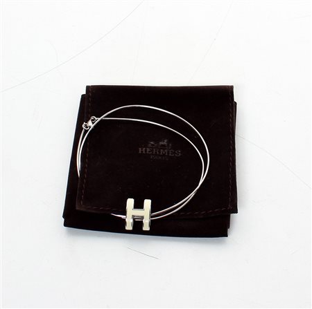 HERMÈS Pendente "Pop H" in smalto bianco e metallo placcato palladio,...