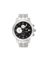 Quadrante nero con indici secondi al centro, quadrantini ausiliari argentati, data