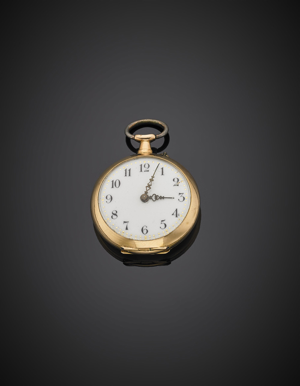 Yellow gold and metal lady's pocket watch, g 17.9, diam. cm 2.80. (slight defects)