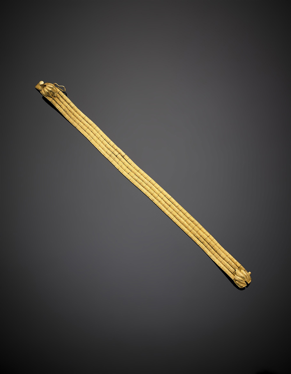 Lot 601 | Bracciale in oro giallo a maglia lucida e satinata a quattro fili con...