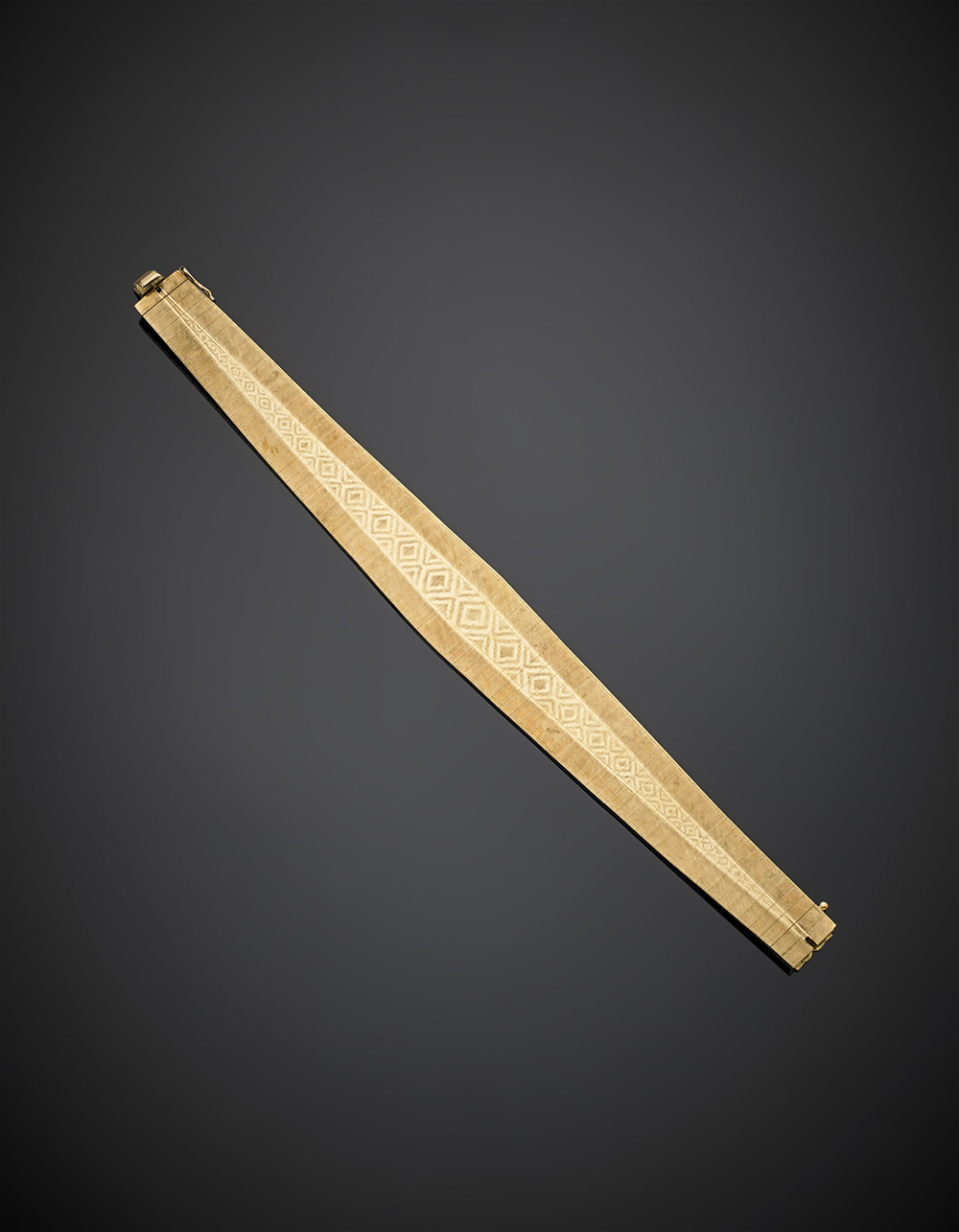 Lot 623 | Bracciale a fascia snodata in oro giallo lucido e satinato, g 60,30.-ENYellow...