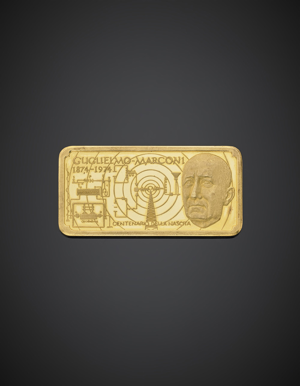 Yellow 900/1000 gold ingot for the centenary of Guglielmo Marconi. g 25.34.