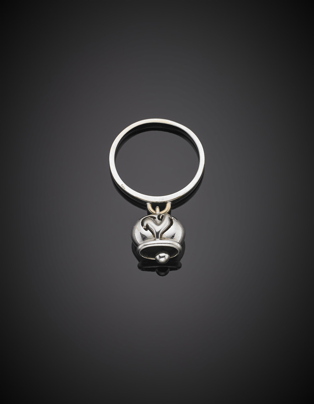 Anello in oro bianco con campanella, g 4,87 misura 16/56. Firmato in corsivo Chantecler.