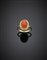 Anello in oro giallo con pietre incolori a contornare un corallo ovale cabochon arancione del Mediterraneo g 4,51 misura 17/57.