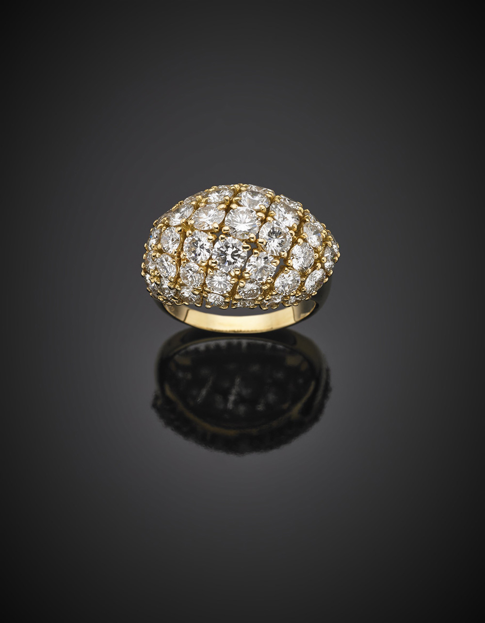 CARTIER Anello bombato in oro giallo con pavé di diamanti rotondi, g 11...