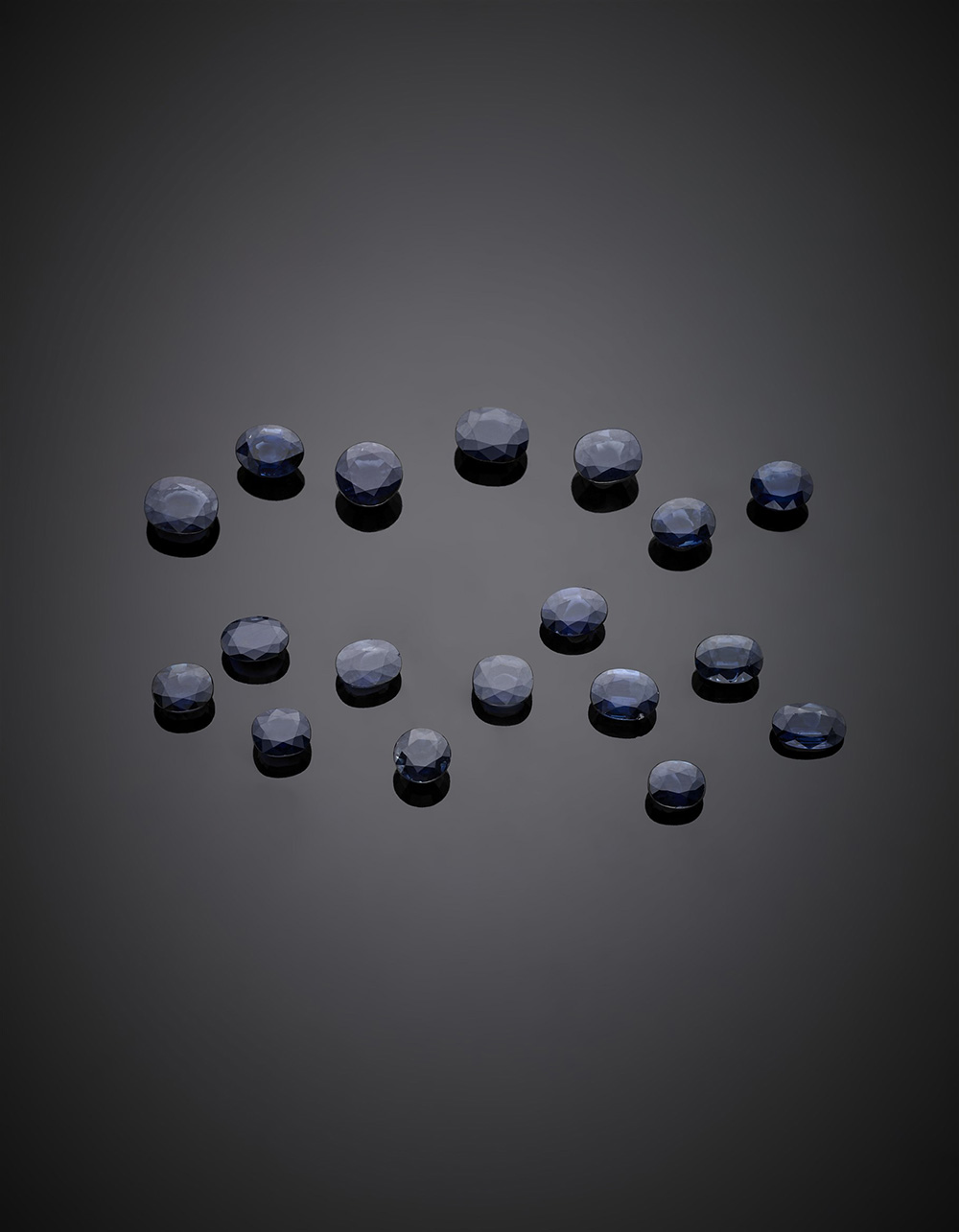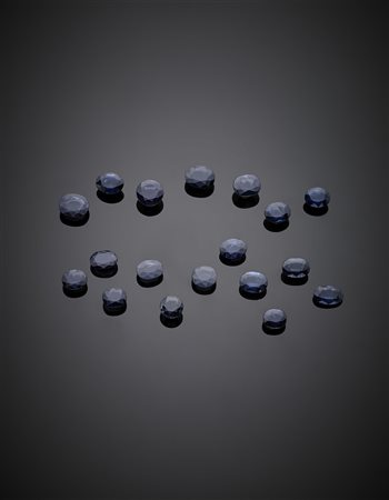 Lotto di diciotto zaffiri di forma, dimensione e caratura differenti, per...