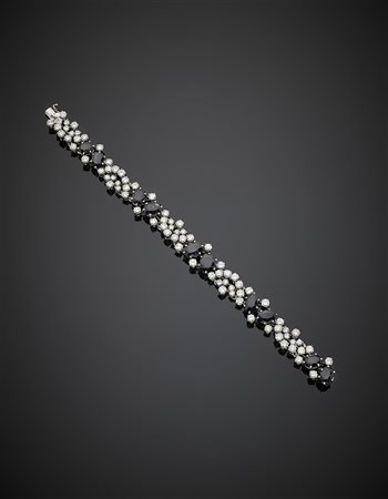 Round diamond, oval sapphire white gold bracelet, diamonds, in all ct. 13.50 circa and sapphires, in all ct. 21.40 circa, g 30.30, length cm 18.90 circa.