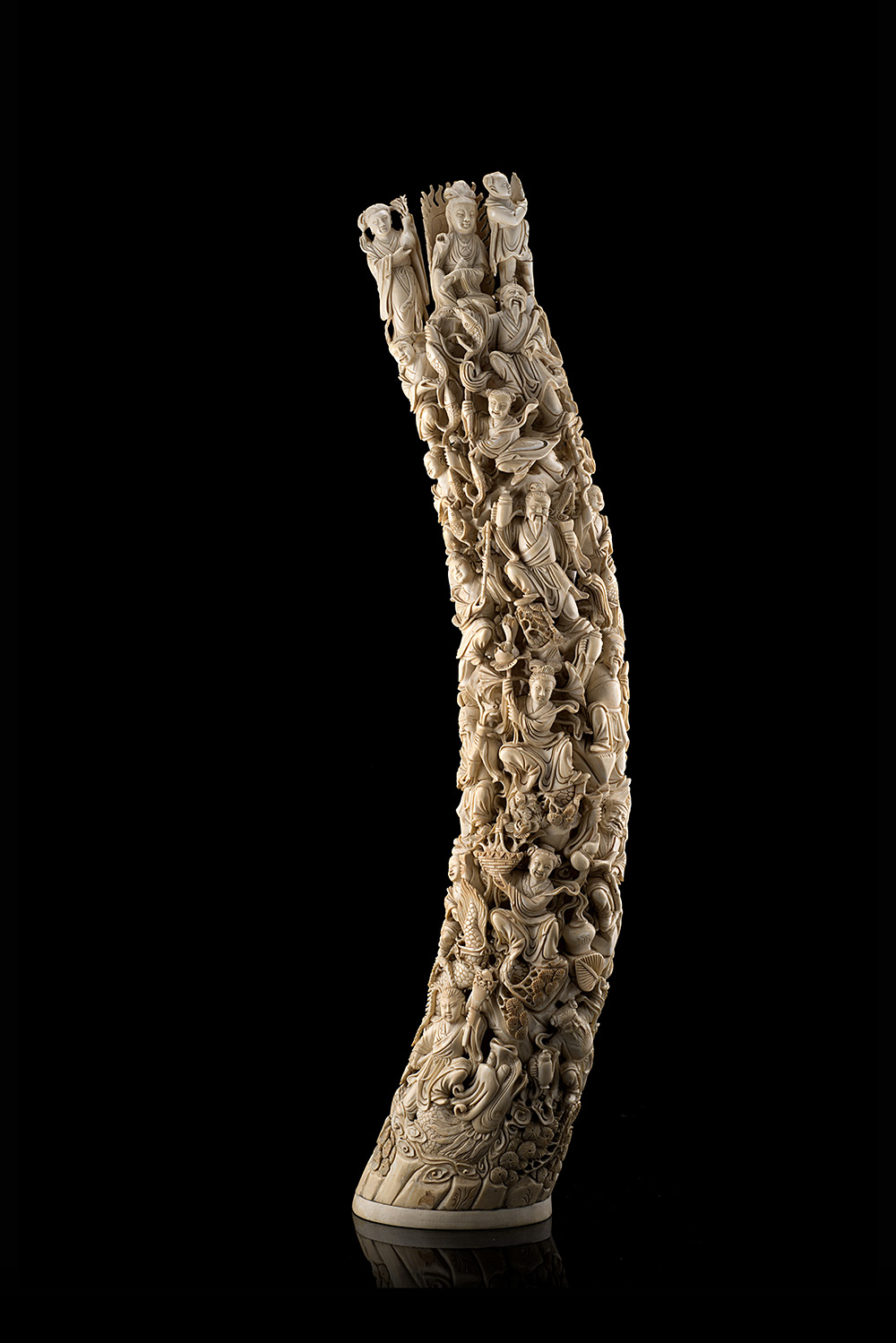 An ivory group depicting Guanyin, deities and attendants (defects and restorations)