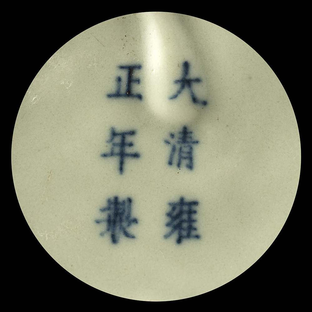 Vasetto a forma di melograno in porcellana a invetriatura celadon, marchio apocrifo Yongzheng alla base