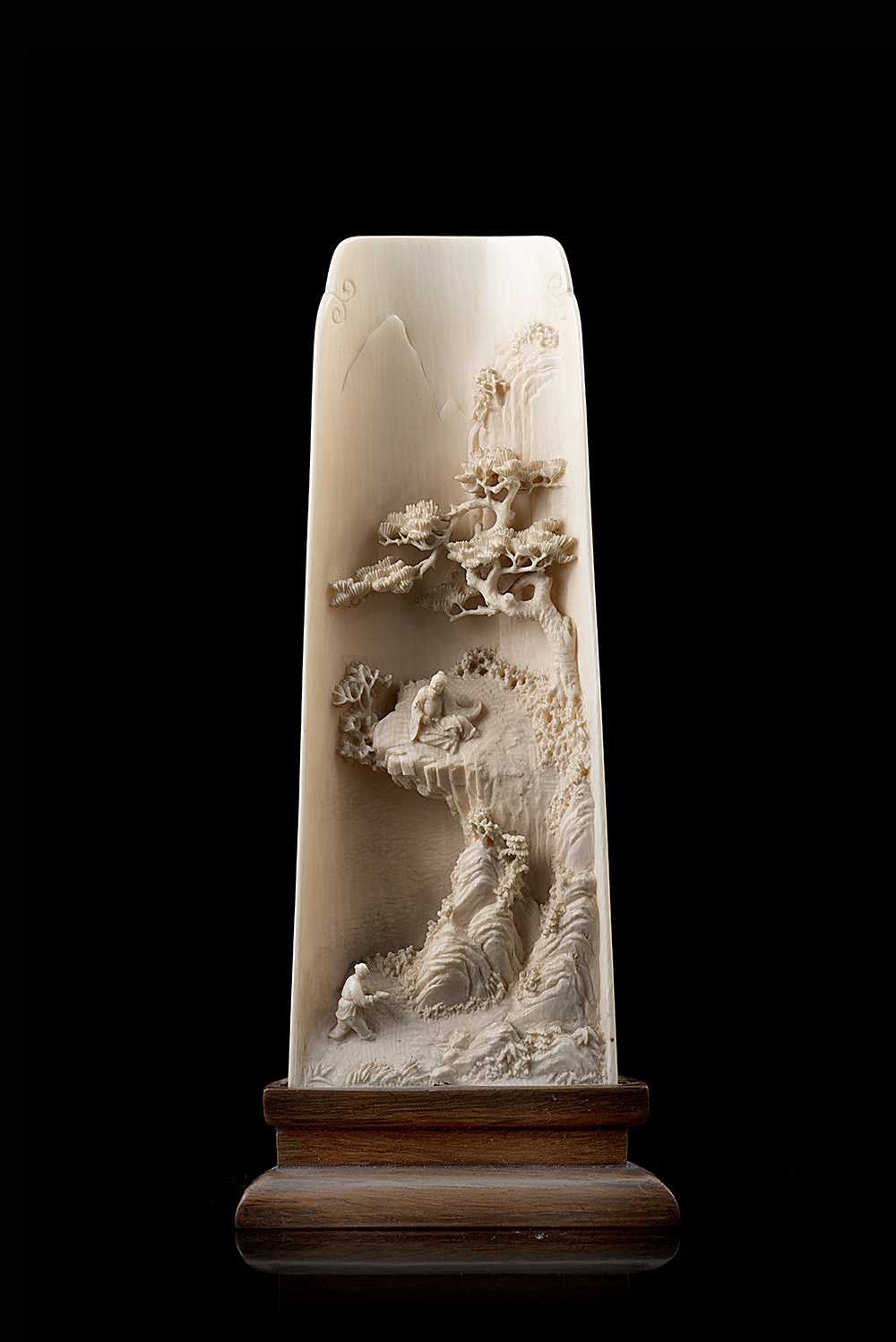 Poggia polso in avorio raffigurante paesaggio e figure, base in legno (lievi difetti)