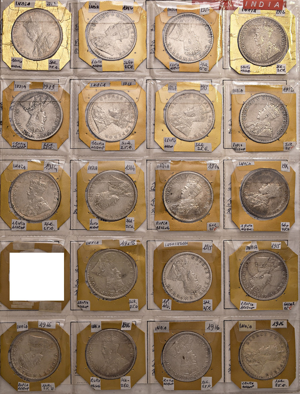 Colonie Inglesi. (soprattutto India). Giorgio V (1910-1936).Album con 70 monete, di cui la metà in argento.