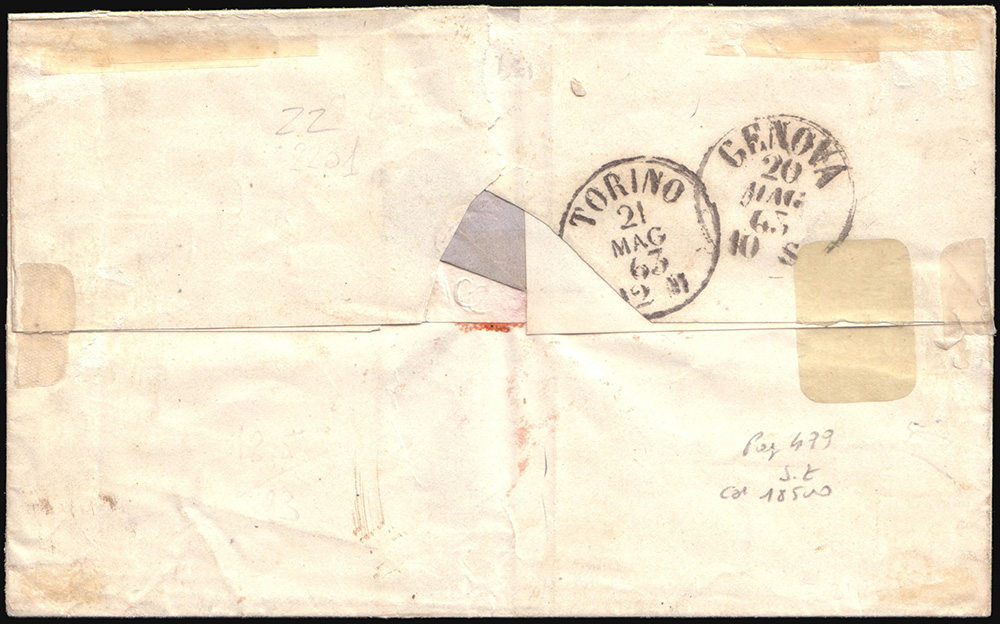 REGNO D'ITALIA 1863 (20 mag.)Lettera senza testo da S. Margherita per...