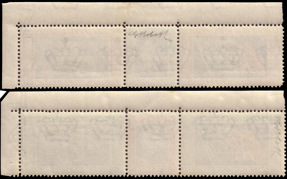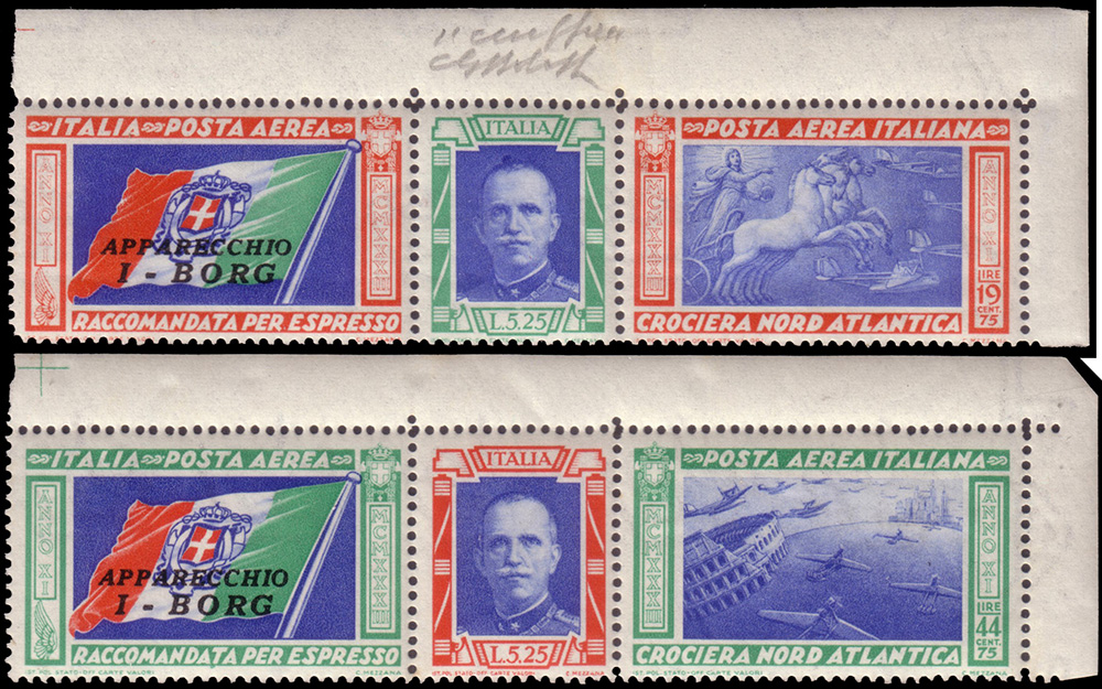 Posta aerea "Crociera del Decennale". Coppia di trittici soprastampati I-BORG.