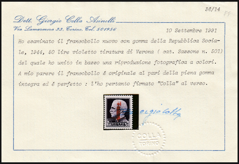 R.S.I. 194450 lire violetto, tiratura di VeronaCert. G....