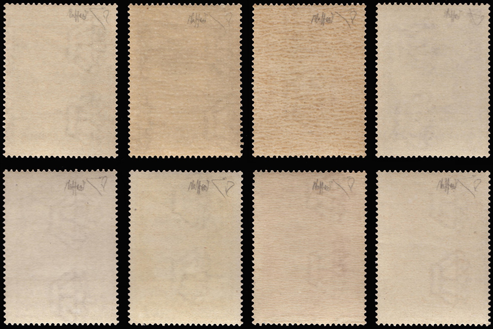 Posta aerea non emessa "Cartina di San Marino con fascio e ala". Serie completa di 8 valori