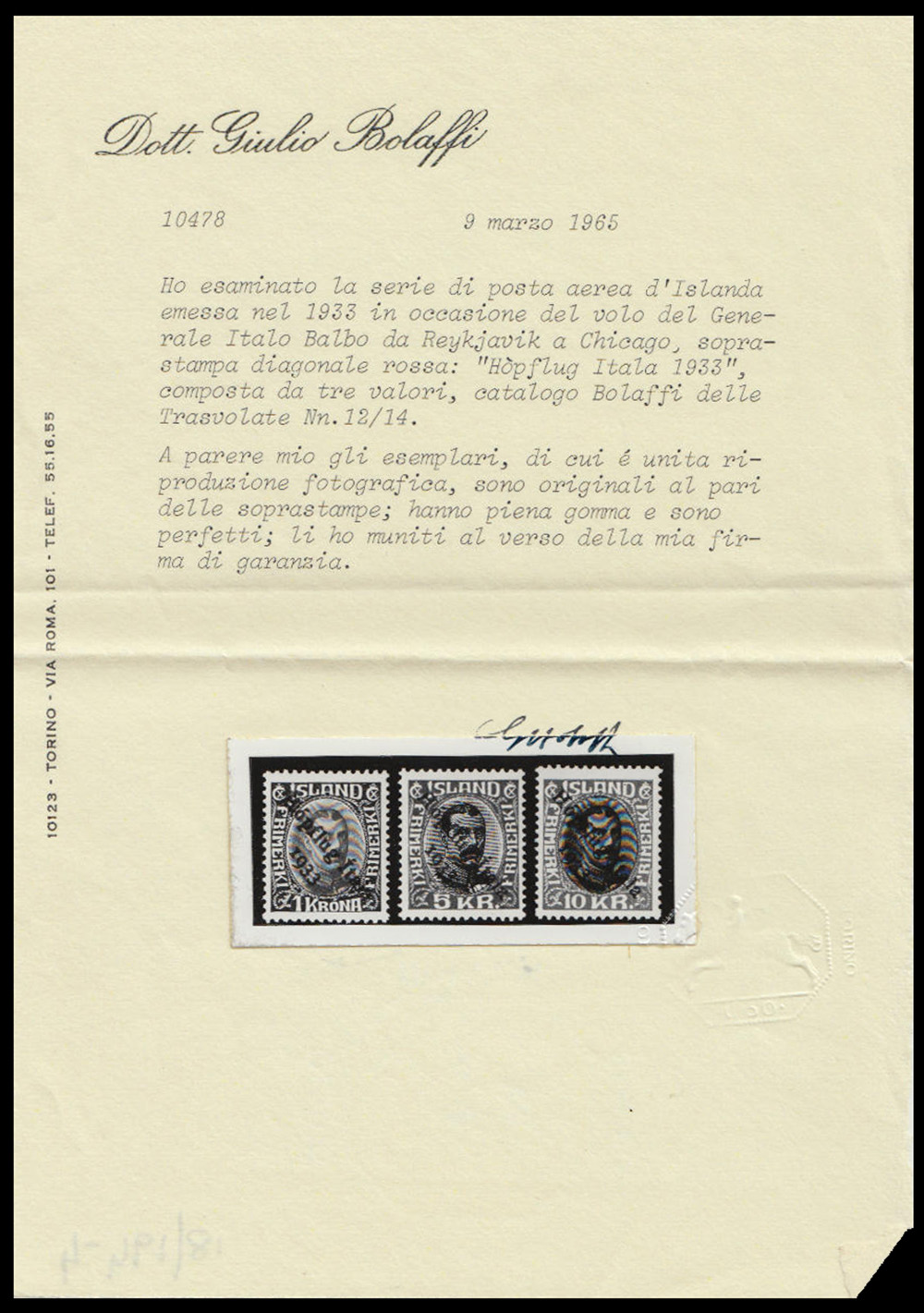 Cert. G. Bolaffi