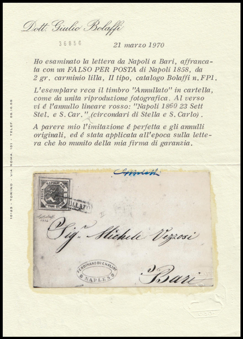 NAPOLI 1860 (23 set.)Dittatura GaribaldiFalsi dell'epoca. Lettera senza testo...