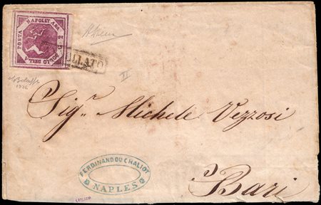 Falsi dell'epoca. Lettera senza testo spedita da Napoli per Bari, affrancata con 2gr. violetto II tipo