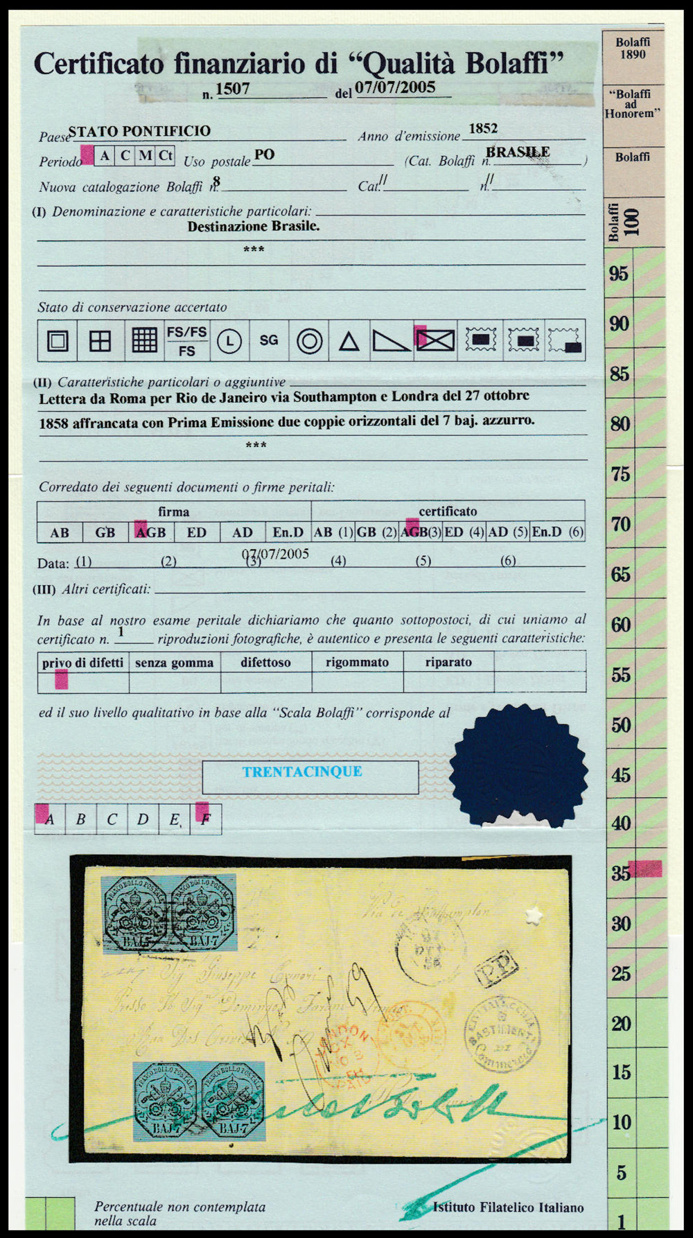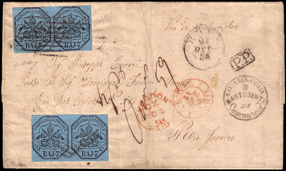 Lot 296 | STATO PONTIFICIO 1858 (27 ott.)Lettera con testo da Roma, via Southampton,...