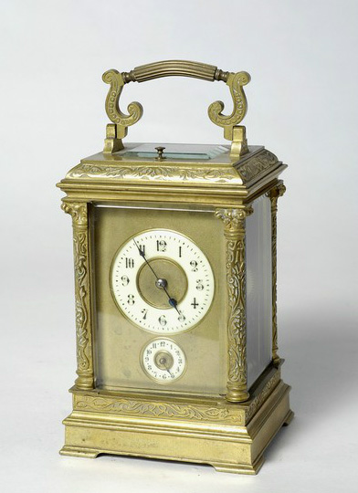 Officielle con cassa in metallo dorato e inciso, quadrante in smalto con numeri arabi, Francia, fine XIX sec.