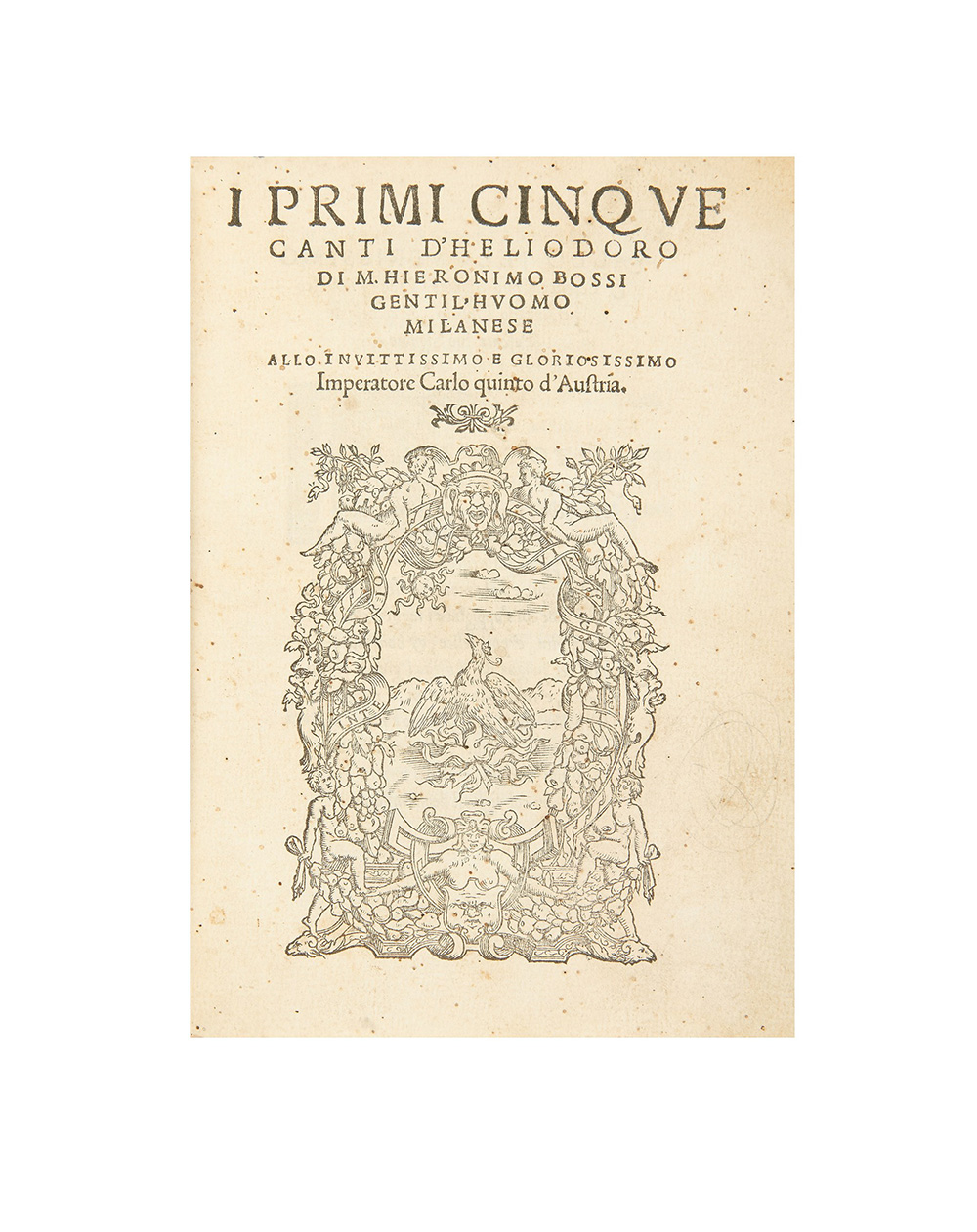 BOSSI, Girolamo (ca. 1540-ca. 1574) - I primi cinque canti d'Heliodoro. Milano: Giovann' Antonio Borgio, 1557.