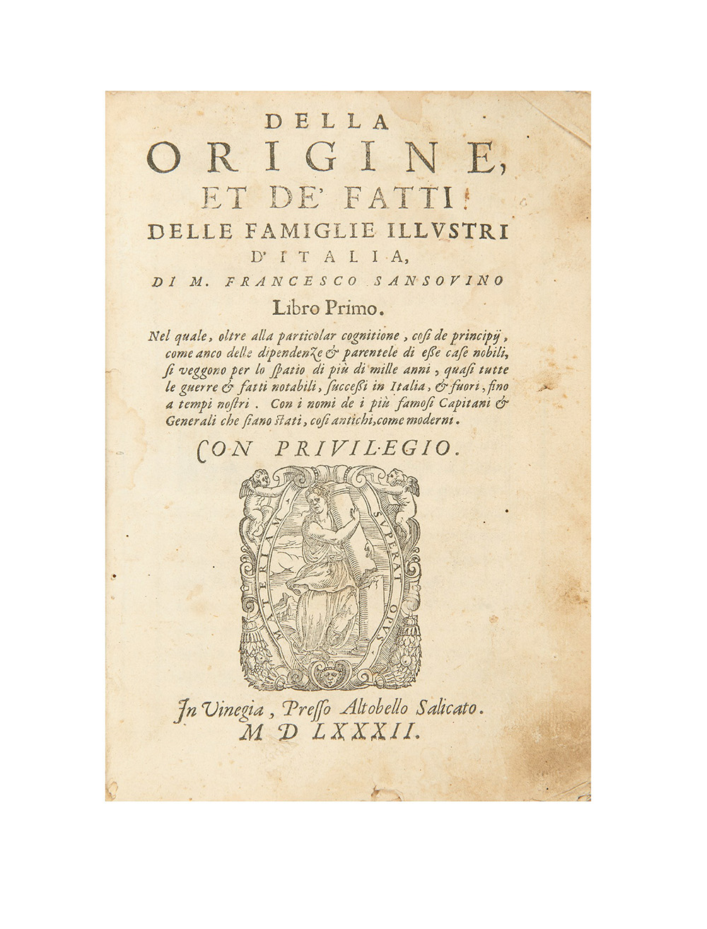 SANSOVINO, Francesco (1521-1583) - Della origine, et de’ fatti delle famiglie illustri d’Italia. Venice: Altobello Salicato, 1582.