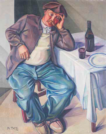 MARIO TOZZI Fossombrone 1895 – Saint-Jean-du-Gard 1979 LE PÈRE LENOIR (CONTADINO DI BORGOGNA), 1920 olio su tela, cm 112x90. Firmato in basso a sinistra: M. Tozzi. Firmato e titolato al verso: M. Tozzi Contadino a tavola. Iscritto al retro: Cat. 332. Provenienza: Vicenza, collezione privata; Esposizioni: Parigi, Salon des Indépendants, gennaio-febbraio 1922; Pallanza, Museo del Paesaggio, mostra personale, settembre-ottobre 1923, n. 5; Firenze, Arte moderna in Italia 1915-1935, Palazzo Strozzi, febbraio-maggio 1967, n. 1448 (etichetta al verso); Firenze, Palazzo Strozzi, mostra antologica, maggio 1978, n. 2; Bibliografia: U. Nebbia, Buone affermazioni dell’arte nostra a Ginevra ed a Zurigo, in “Emporium”, Bergamo, n. 389, maggio 1927 (ill. b/n); L. Fiumi, Mario Tozzi. L’homme et l’oeuvre, Les Ecrivains Réunis, Parigi 1928, n. 6 (datato 1922); L. Fiumi, Col pittore Tozzi in Borgogna, in “L’Ambrosiano”, Milano, 17.8.1929 e “Cronaca Prealpina “, Varese, 9.8.1931, successivamente ripubblicato in “Il Tirreno”, Livorno, 22.2.1960; 10. H. Fabureau, Mario Tozzi et Lionello Fiumi hôtes de Lignorelles, in “Le Bourguignon”, Digione, 4.10.1929; L. Fiumi, Li ho veduti a Parigi, Ghelfi, Milano 1960, p. 163 (ill. b/n); G. Marussi (a cura di), Mario Tozzi, in “Le Arti”, n. 4 bis, Milano, marzo 1965; M. Monteverdi, “Giornale di Bergamo”, Bergamo, 30.5.1966, ripr. b/n; G. P. Faizon, “Il Cristallo”, n. 2, Bolzano, dicembre 1968; E. Bénézit, Dictionnaire des Peintres, Sculpteurs, Dessinateurs et Graverurs, Librairie Grűnd, Parigi 1976, vol. X, p. 256 (con il titolo Le Paysan); E. Carli, Mario Tozzi, Giulio Bolaffi Editore, Torino 1976, p. 11 (ill.); E. Carli, Mario Tozzi, in “Prospettive d’Arte”, n. 10, Milano, gennaio-febbraio 1977, n. 4 (ill. b/n); AA. VV., Mario Tozzi, in “Prospettive d’Arte”, n. 14, Milano, ottobre-novembre 1977, n. 7 (ill. b/n); G. Marinelli, La vitalità di Mario Tozzi tra metafisica e costruttivismo, in “La Voce Repubblicana”, Roma, 13.5.1977; G. Marinelli, Stampe raccomandate, in “Arterama”, Milano, aprile 1977; G. Marchiori, estratto di “Bolaffi Arte”, Torino, gennaio 1978; R. Federici, “Paese sera”, Roma, 12.5.1978; T. Marcheselli, “Gazzetta di Parma”, Parma, 12.9.1979 (ill.); T. Marcheselli, “Il Nord”, Borgomanero, 27.9.1979 (cit.); G. Mascherpa, Tozzi fermava il tempo, in “Arte”, Milano, n. 168, novembre 1986 (ill.); M. Pasquali (a cura di), Catalogo Ragionato Generale dei Dipinti di Mario Tozzi, Volume Primo, Giorgio Mondadori & Associati, Milano 1988, n. 20/9, pp. 90, 99 (ill.).