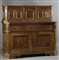 a due corpi, in noce e radica di noce, piano con angoli scantonati, un cassetto sulla fascia e due sportelli sul fronte, alzata con cinque sportelli, XVII sec. cm. 160x177x70