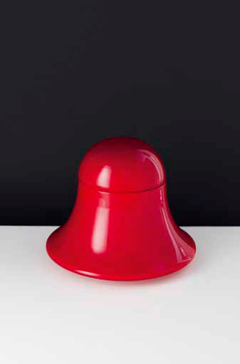 SERGIO ASTI (1926) SALVIATI & C. Vaso in vetro rosso con coperchio, anni ’60 Firma incisa: Salviati, disegno Sergio Asti. Reca vecchia etichetta: Salviati&C. Murano, Made in Italy. altezza: cm 18.
