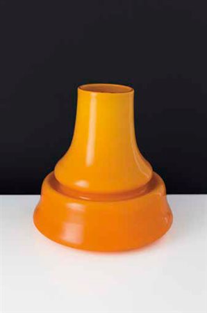 SERGIO ASTI (1926) SALVIATI & C. Vaso “Marco” in vetro arancione, anni ‘60 Iscrizione incisa: Serie Compasso D’oro design Sergio Asti 1962. Reca vecchia etichetta: Salviati&C. Murano, Made in Italy. altezza: cm 24. Bibliografia: E. Ambasz (a cura di), Italy: The New Domestic Landscape. Achievements and Problems of Italian Design, The Museum of Modern Art (NY), catalogo della mostra, Centro Di, Firenze 1972, pag. 88, riprodotto. Con il vaso “ Marco” Sergio Asti vinse il Compasso D’oro nel 1962.