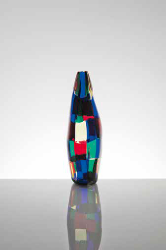 FULVIO BIANCONI (1915 – 1996) VENINI Vaso della serie “Pezzati”, 1991 Firma incisa: 91 venini Fulvio Bianconi. Reca etichetta: VENINI MURANO MADE IN ITALY. altezza: cm 27,5.